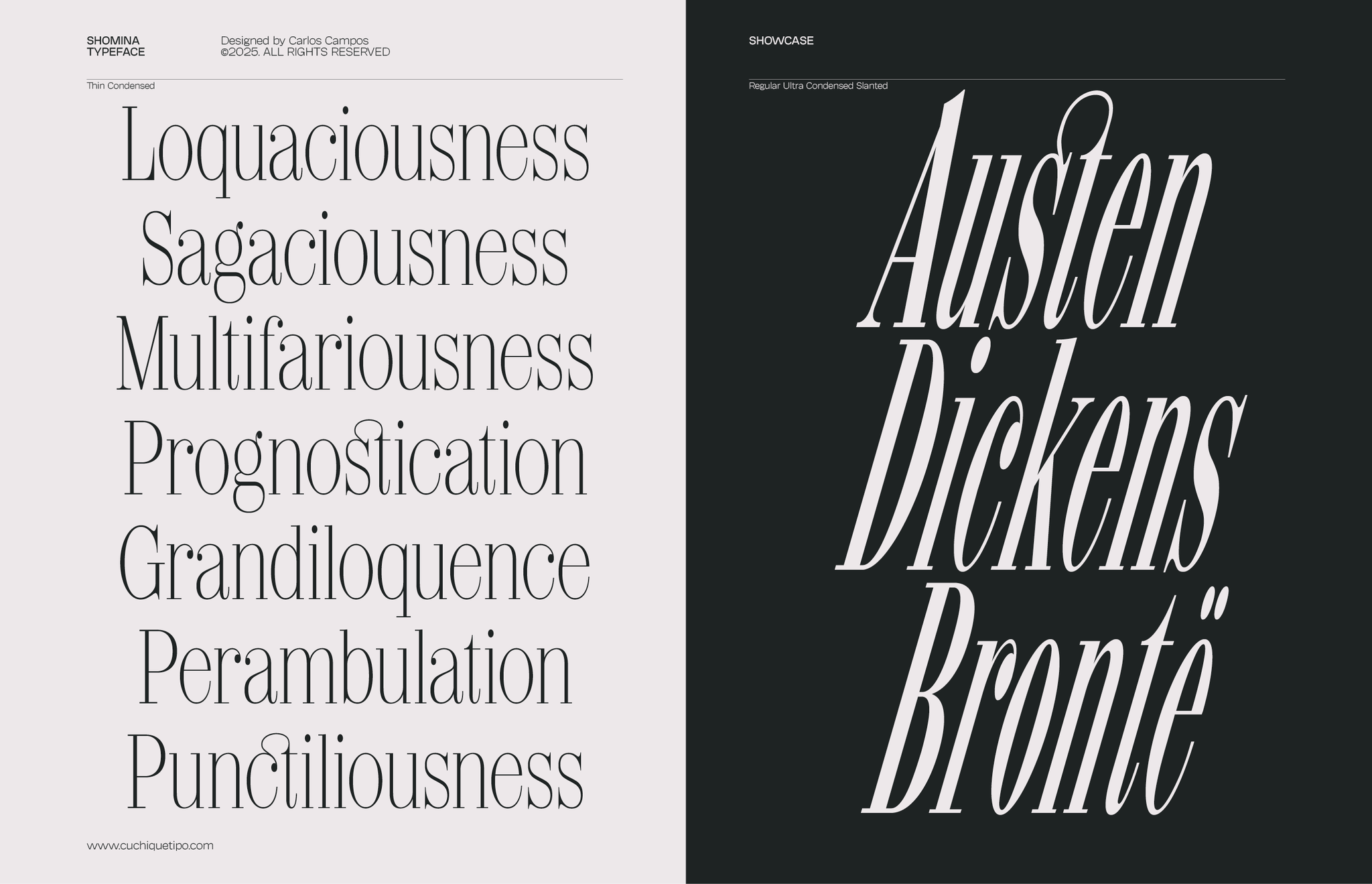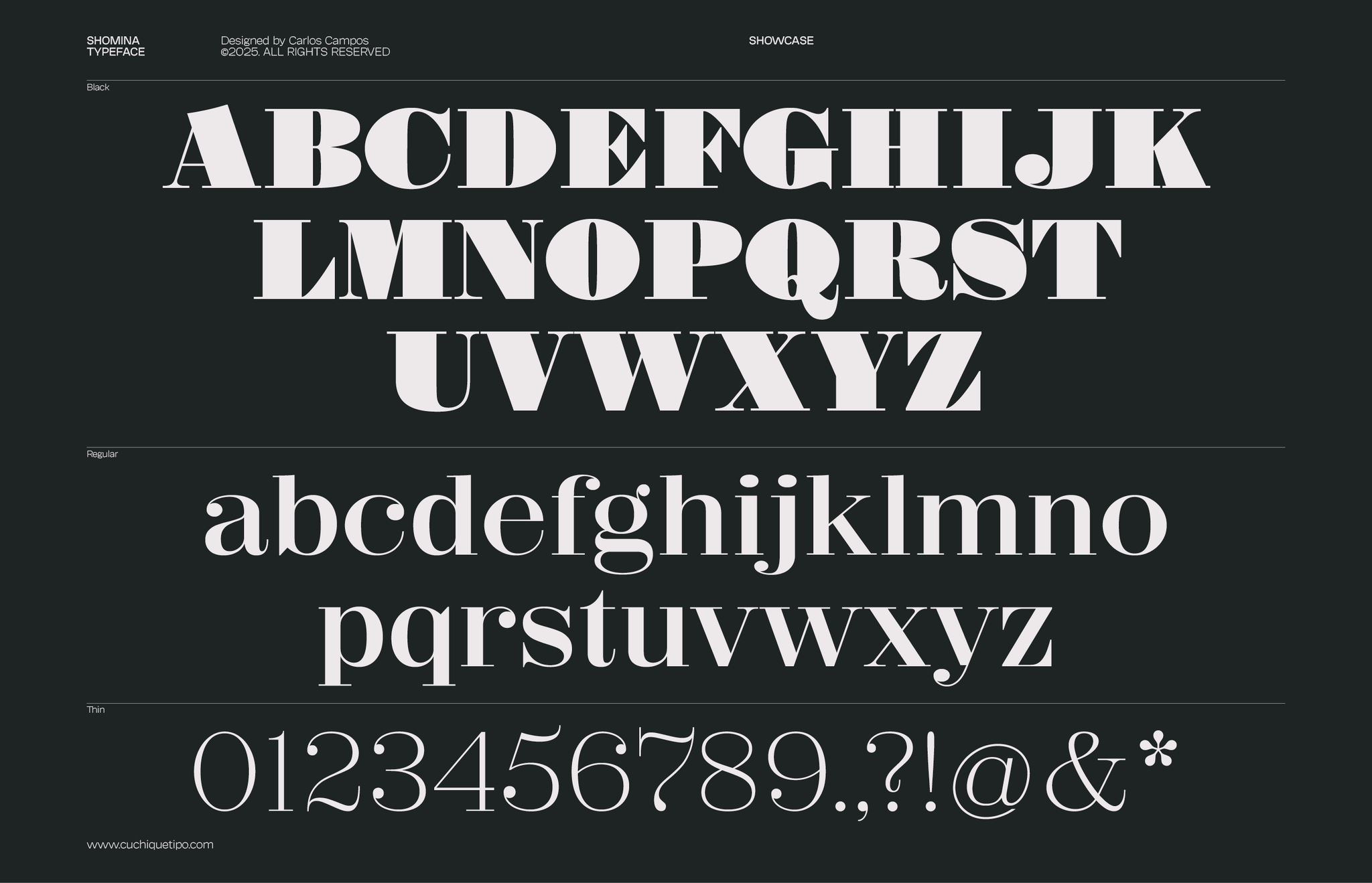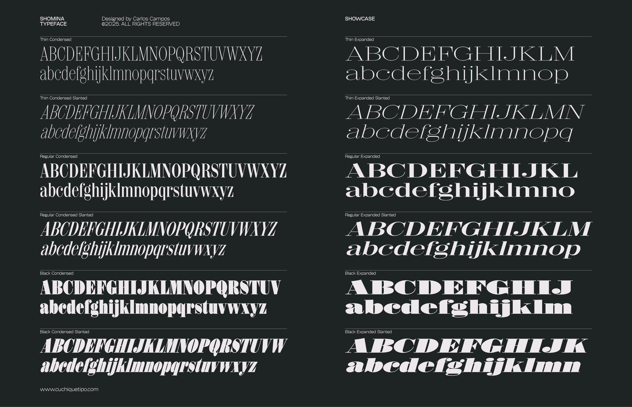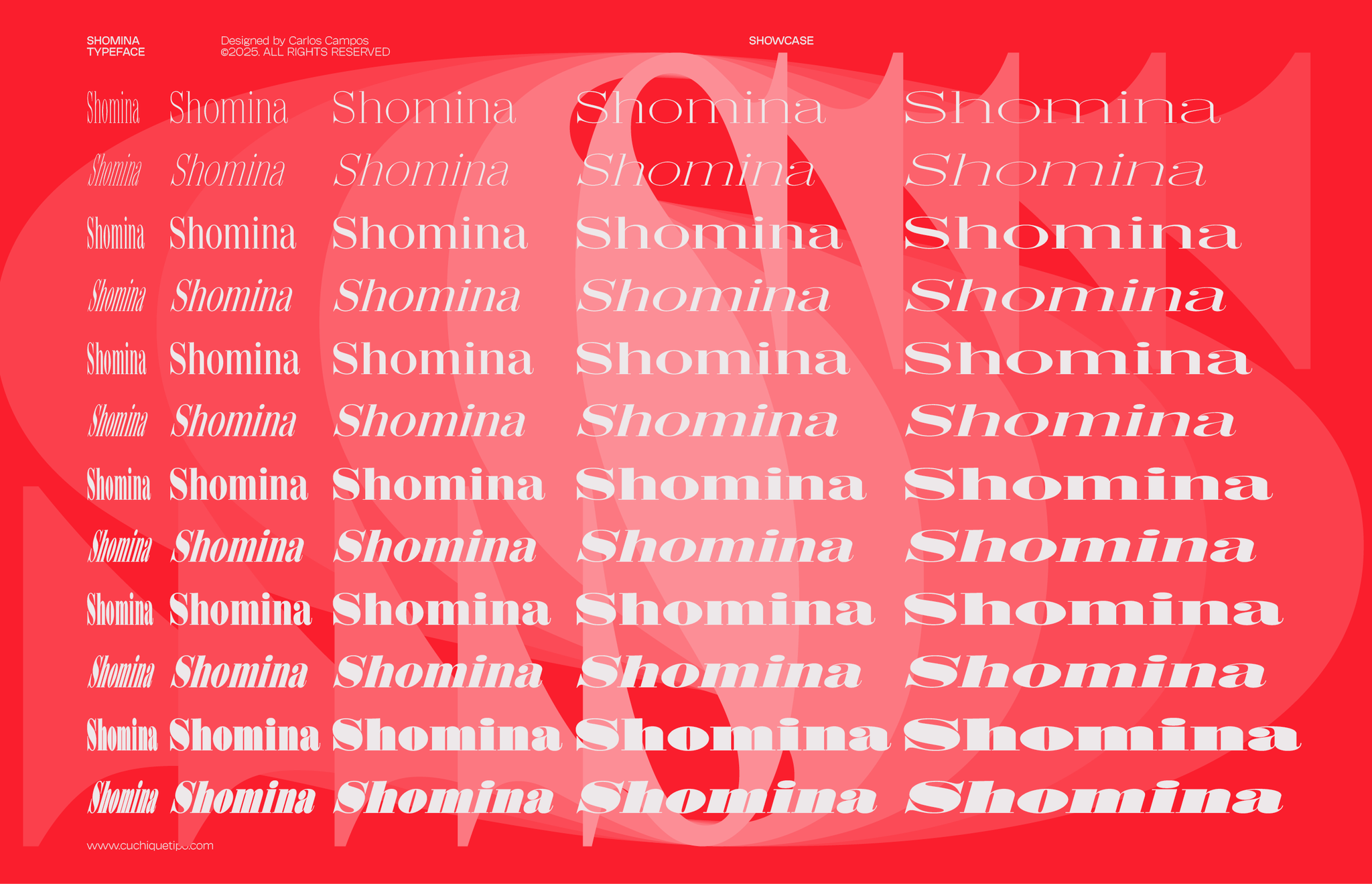 Allow me to present you the specimen of my newly crafted typeface: SHOMINA! A creation inspired by the timeless forms of the Didone style, that emerges from the harmonious confluence of traditional elegance and modern refinement. Shomina offers thirty distinct weights (plus the slanted variants), allowing the most fastidious designer to tailor its appearance to their precise specifications. I’m sure you shall find Shomina an indispensable addition to your typographic repertoire!