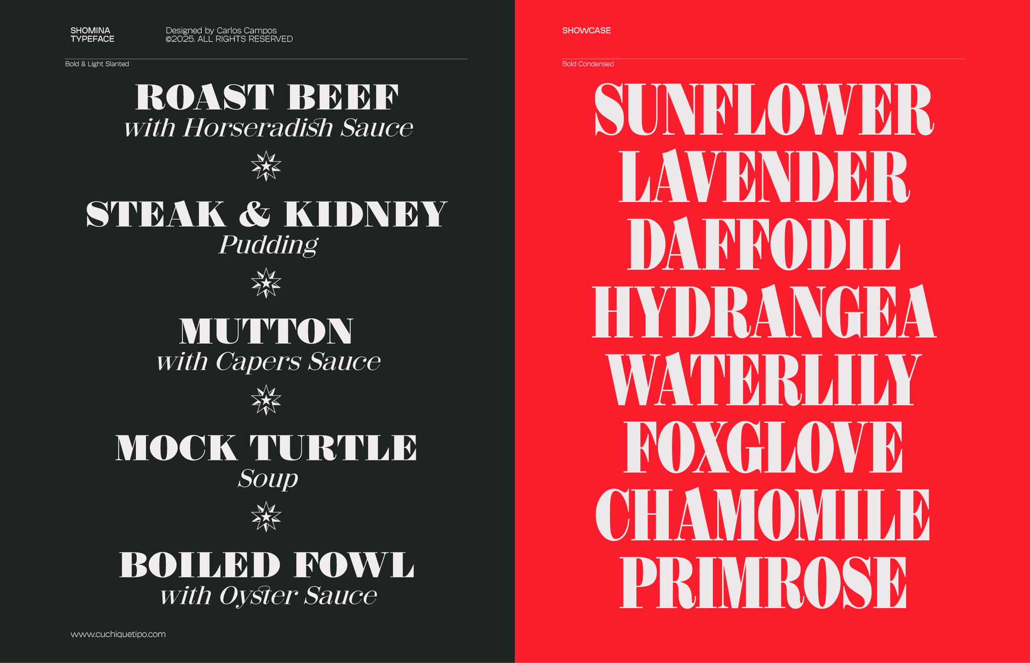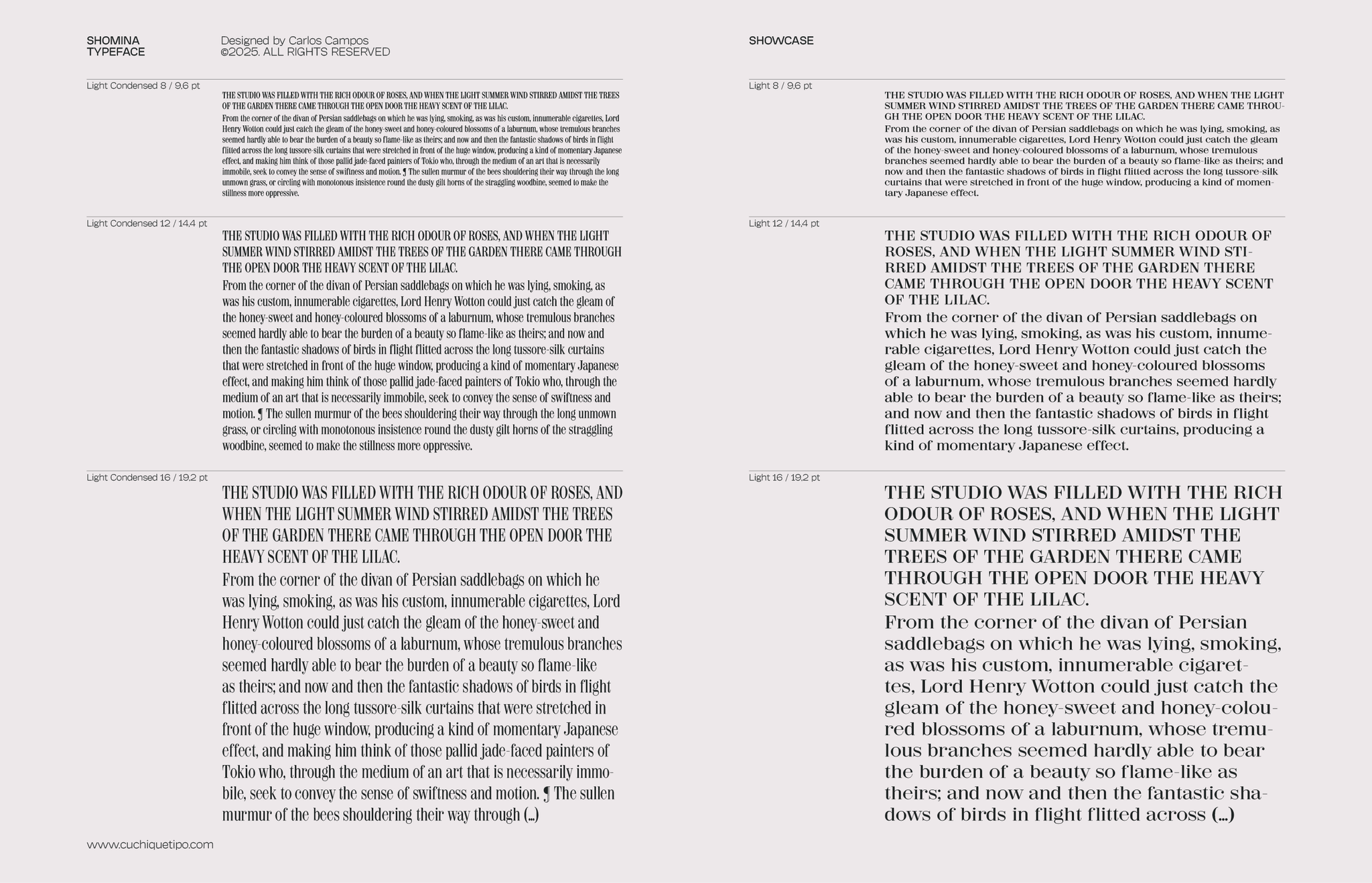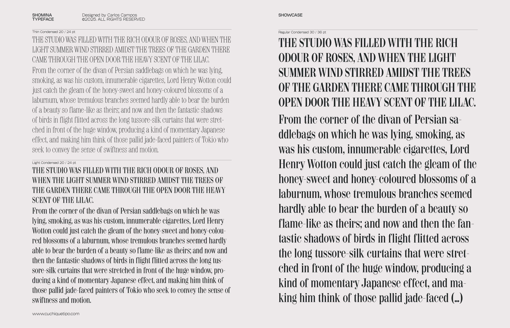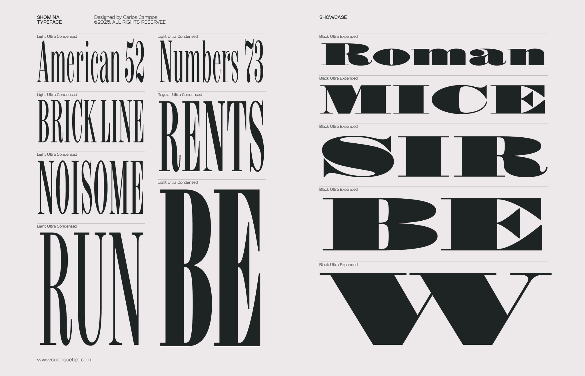 Allow me to present you the specimen of my newly crafted typeface: SHOMINA! A creation inspired by the timeless forms of the Didone style, that emerges from the harmonious confluence of traditional elegance and modern refinement. Shomina offers thirty distinct weights (plus the slanted variants), allowing the most fastidious designer to tailor its appearance to their precise specifications. I’m sure you shall find Shomina an indispensable addition to your typographic repertoire!